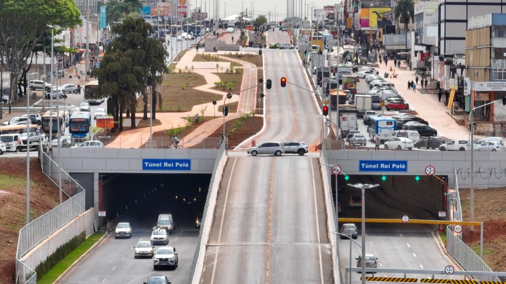 A maior obra foi aquela que veio para atender a uma demanda antiga de uma das regiões administrativas mais populosas do DF: o Túnel Rei Pelé, em Taguatinga. Concluída em tempo recorde, em dois anos e dez meses, a via subterrânea recebeu investimento de R$ 275 milhões e gerou mais de 1,6 mil empregos, beneficiando cerca de 140 mil pessoas, também de outras regiões, como Ceilândia, Samambaia e Sol Nascente/Pôr do Sol.